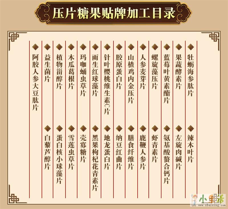压片糖果贴牌代加工目录有: